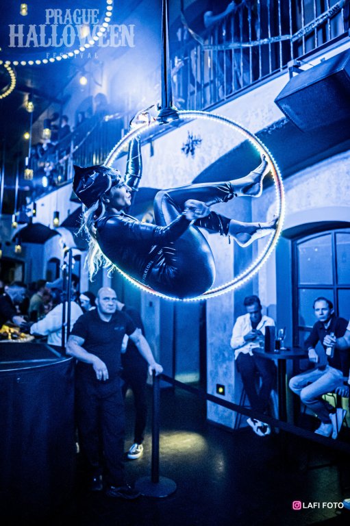 Wenn Sie ein attraktives Programm für die Bühne Ihres Tanzclubs oder ein ungewöhnliches Programm für das Foyer Ihrer Veranstaltung suchen, ist das Aerial Hoop Solo die richtige Wahl. Diese Darbietung wird oft mit einer der Lichtshows kombiniert, um maßgeschneiderte Projekte zu schaffen.