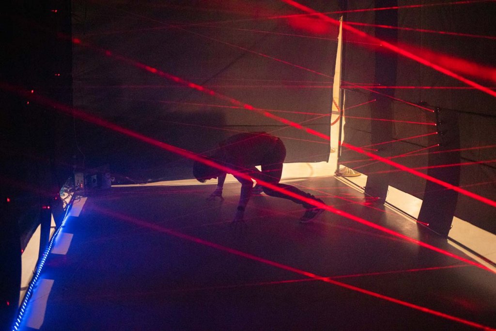 Das Laserlabyrinth hat ein lichtdichtes Zelt, aber die Laser können auch in einem dunklen Raum installiert werden.