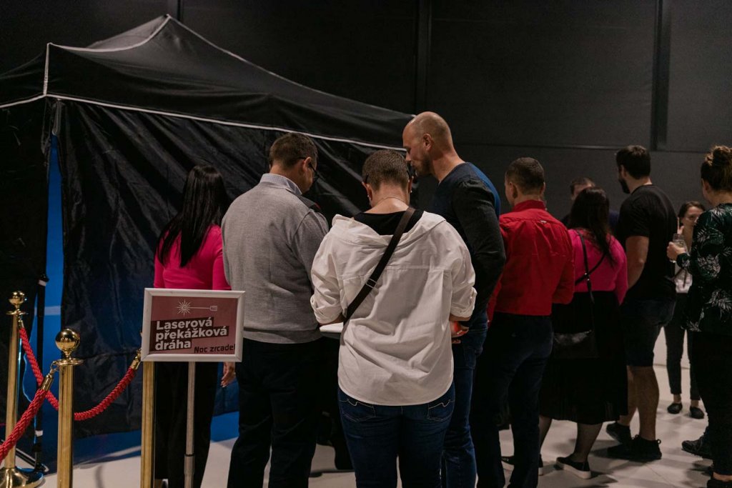 Viele Kunden haben uns gefragt, ob das Laser-Labyrinth für formelle Veranstaltungen geeignet ist, bei denen die Leute formell gekleidet sind. Jeder Veranstalter ist zunächst einmal überrascht, wie bereitwillig sich Damen in Abendkleidern und Herren in Anzügen in das Labyrinth stürzen.