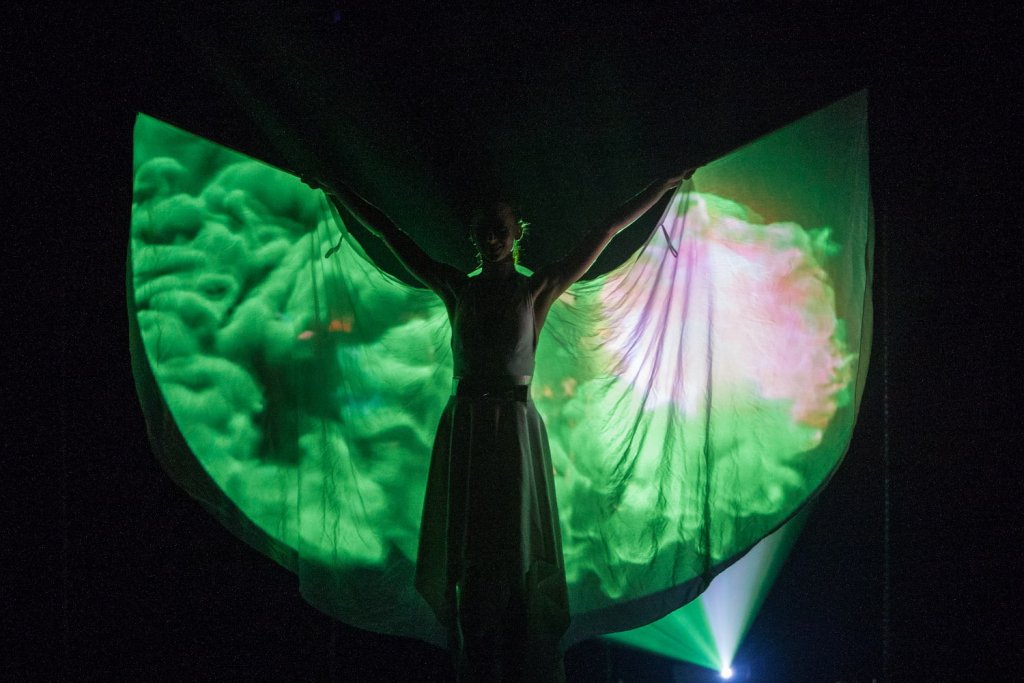 Wir sind alle mit Projektionen auf eine Wand oder einen Bildschirm vertraut. Was würden Sie dazu sagen, Ihre Geschichte während einer Aufführung direkt auf die Kostüme der Darsteller zu projizieren?