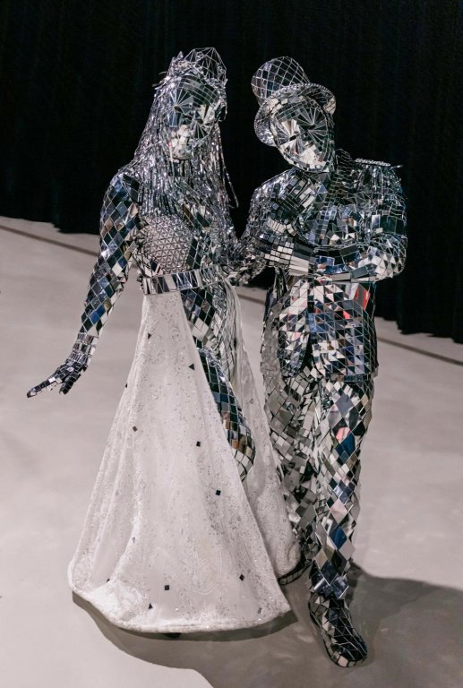 Spiegelkostüme lassen sich gut mit Lichtshows kombinieren. Spiegel reflektieren das Licht sehr effektiv und erzeugen einen spektakulären visuellen Effekt.