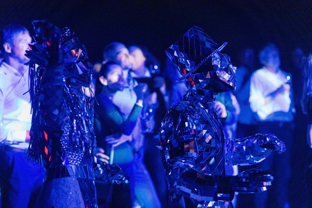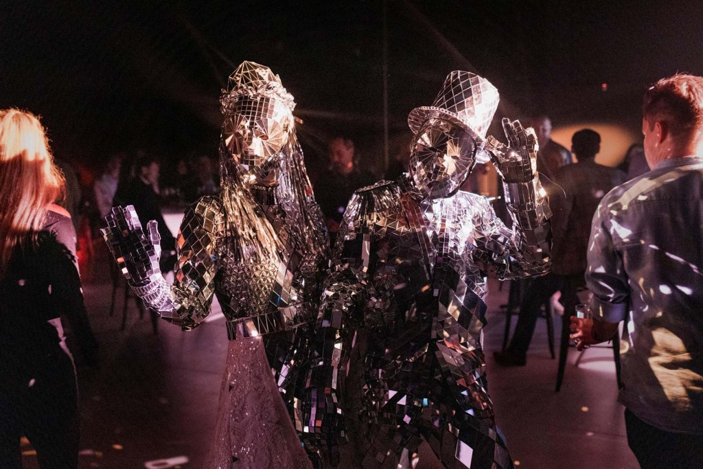Das verspielte Spiegelpaar unterhielt die Gäste während des gesamten Abends, indem es Fotos mit den Besuchern machte und mit ihnen tanzte.