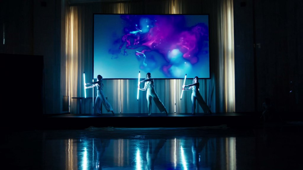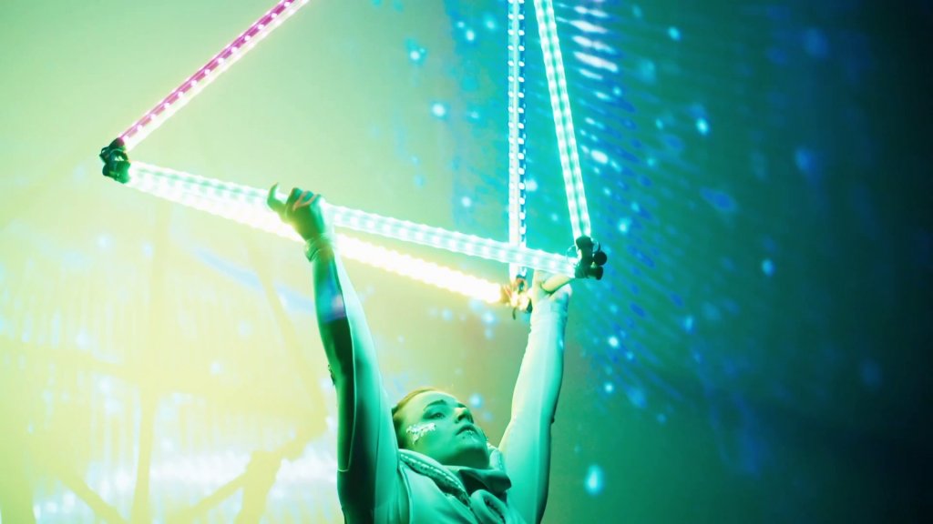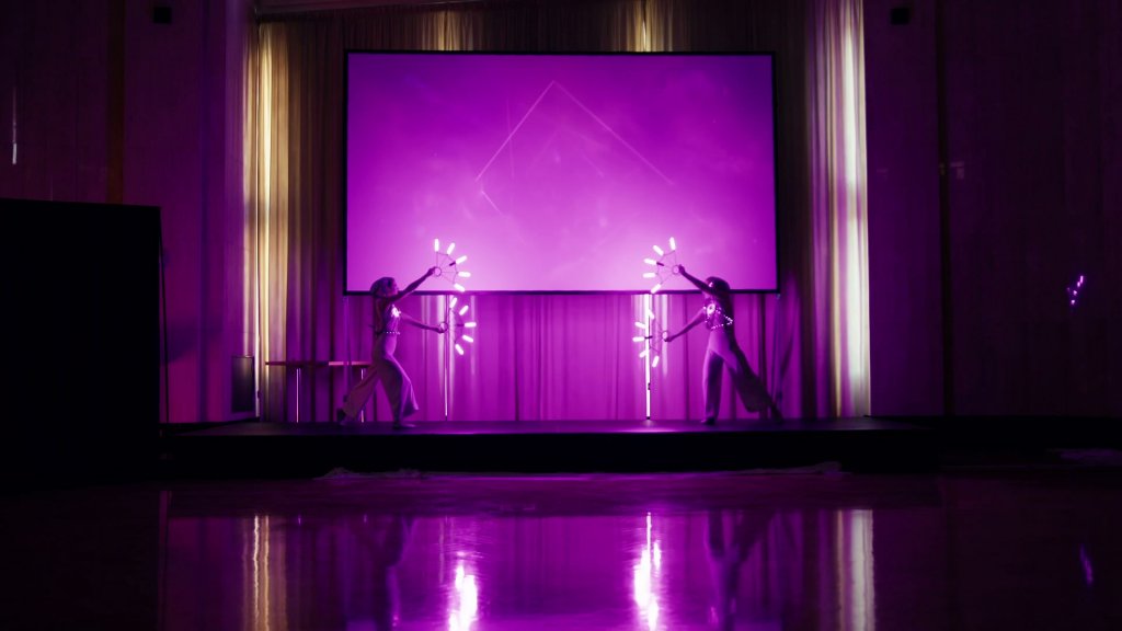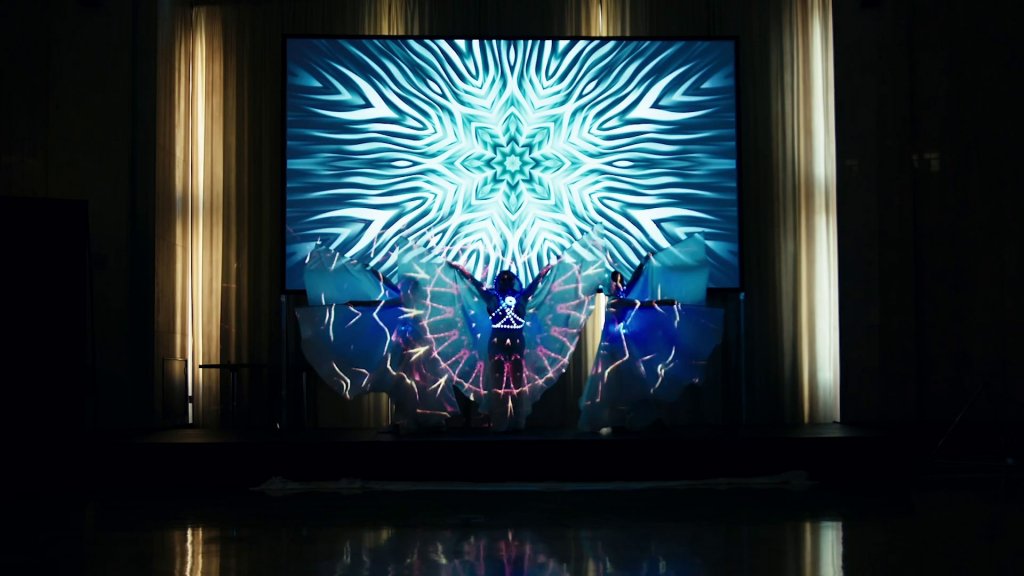 Das Hauptziel war eine Kombination verschiedener Arten von Projektionen. Insbesondere haben wir Projektionen auf die Kostüme der Darsteller und Requisiten mit Projektionen auf eine herkömmliche Projektionsfläche kombiniert.