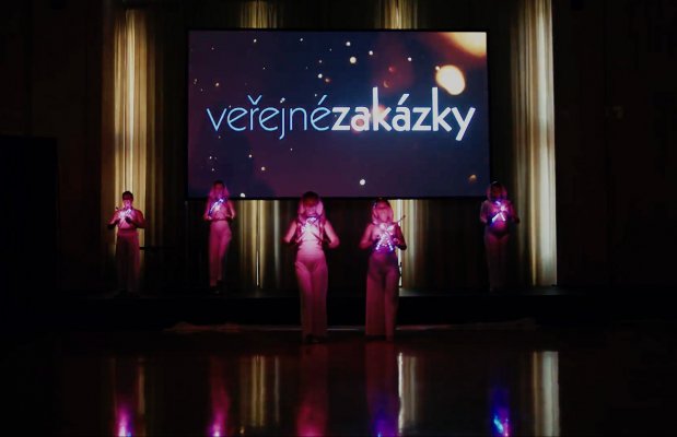 Die Lichtshow mit Projektionen und Akrobatik zum Jubiläum der Zeitschrift Veřejné Zakázky war eine große Herausforderung mit gutem Ende.