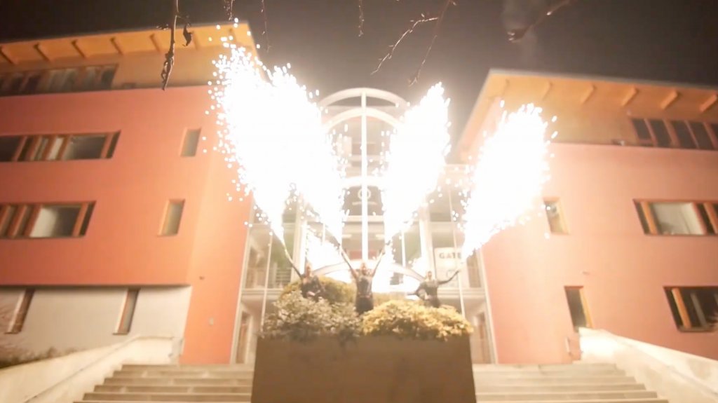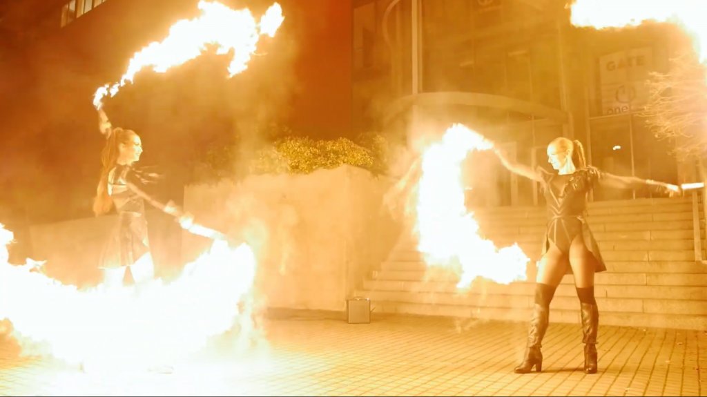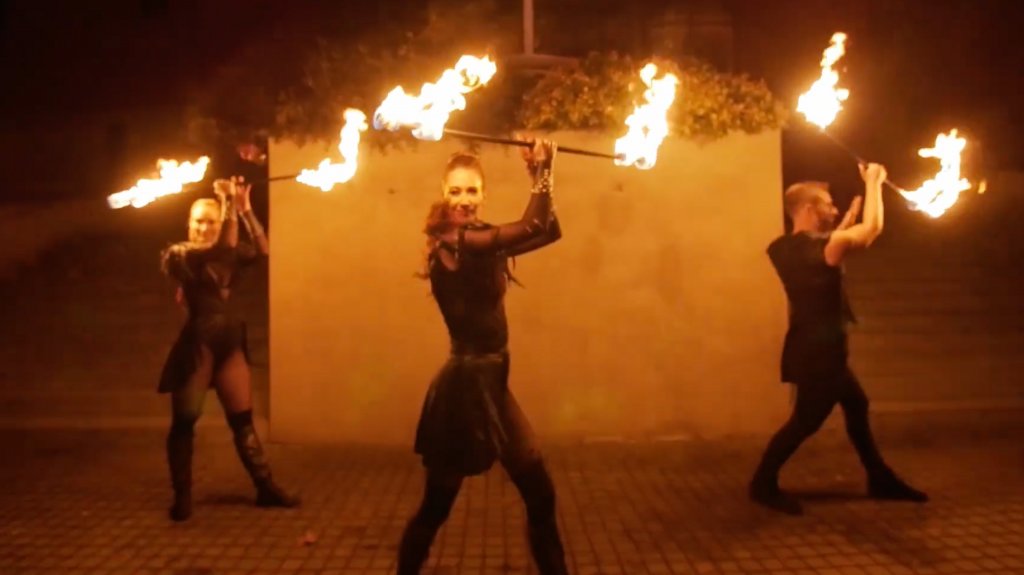 Online-Events haben in den letzten zwei Jahren einen enormen Aufschwung erlebt. Eine Feuershow ist eine ideale Ergänzung, da die Energie des Feuers auch über TV-Bildschirme übertragen werden kann. Wir produzierten eine Online-Performance für One Planet One Business vor dem Hauptsitz des Unternehmens. Wir beleuchteten das Gebäude mit spezieller Beleuchtung, um das Firmenlogo und die Architektur hervorzuheben.
