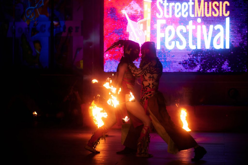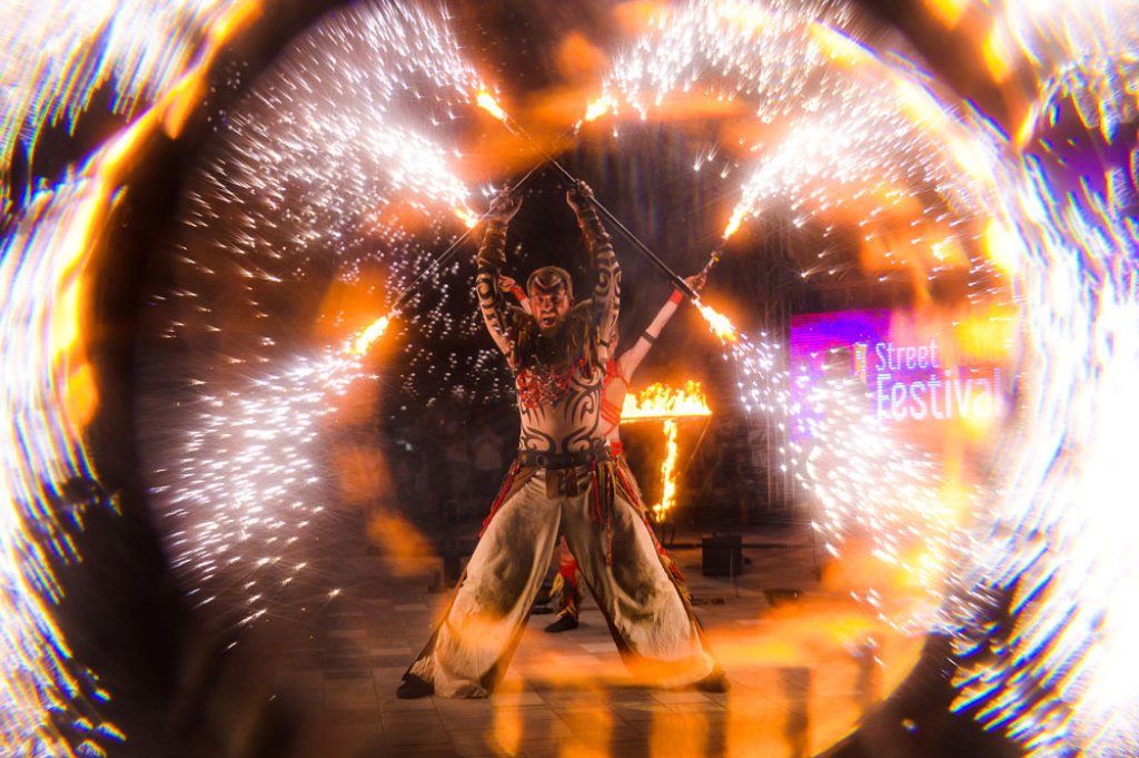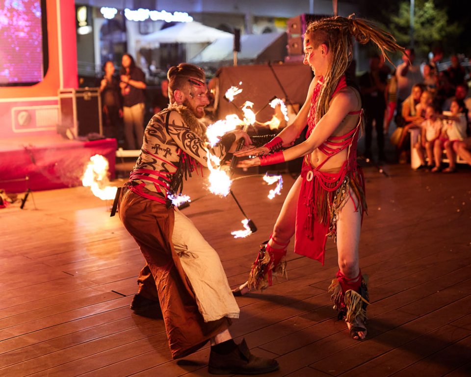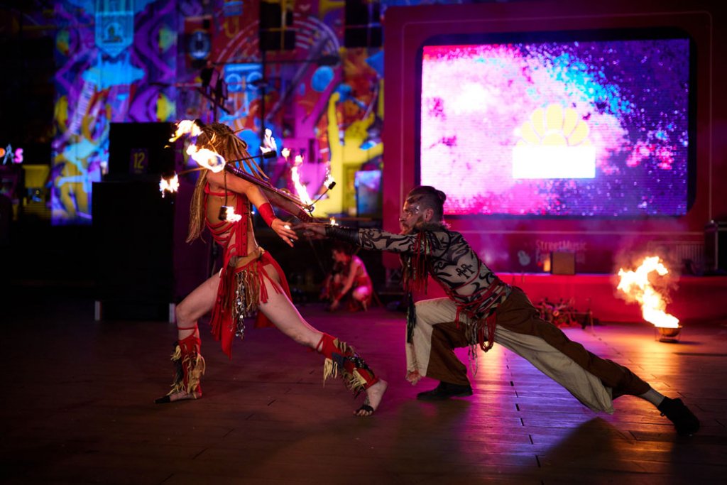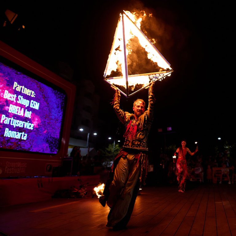 Auf dem Street Art Festival in Satu Mare in Rumänien haben wir eine Tribal Fire Show mit Flammenwerfern und einer ordentlichen Portion Pyrotechnik aufgeführt. Das war eine unglaubliche Erfahrung für uns. Die Leute im Publikum waren fantastisch, und wir haben den zweiten Platz im Wettbewerb des Festivals gewonnen.