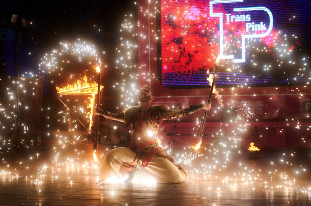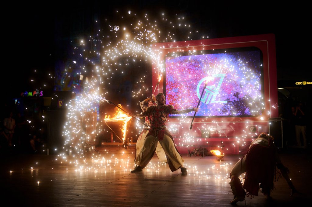 Für das Festival wählten wir die Stammestrommel-Show, die wir mit Bodenflammenwerfern und Feuerdekorationen aufwerteten. Eine interessante Besonderheit war der Wechsel der Bühnen. Wir traten an einem Tag an drei Orten auf und hatten nur wenig Zeit, um umzuziehen. Eine gute Koordination zwischen den Künstlern und dem technischen Team war notwendig, damit alles wie geplant funktionierte.